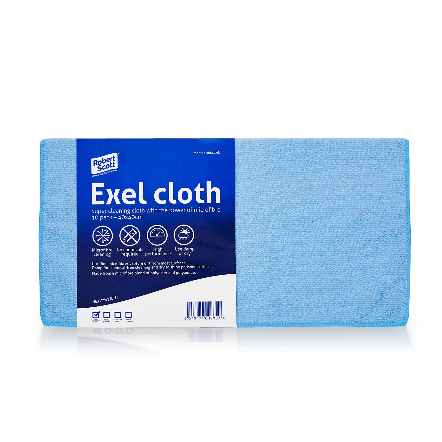 Robert Scott Exel® Microfibre Kitchen Cleaning Cloths – 40x40cm, Pack of 10