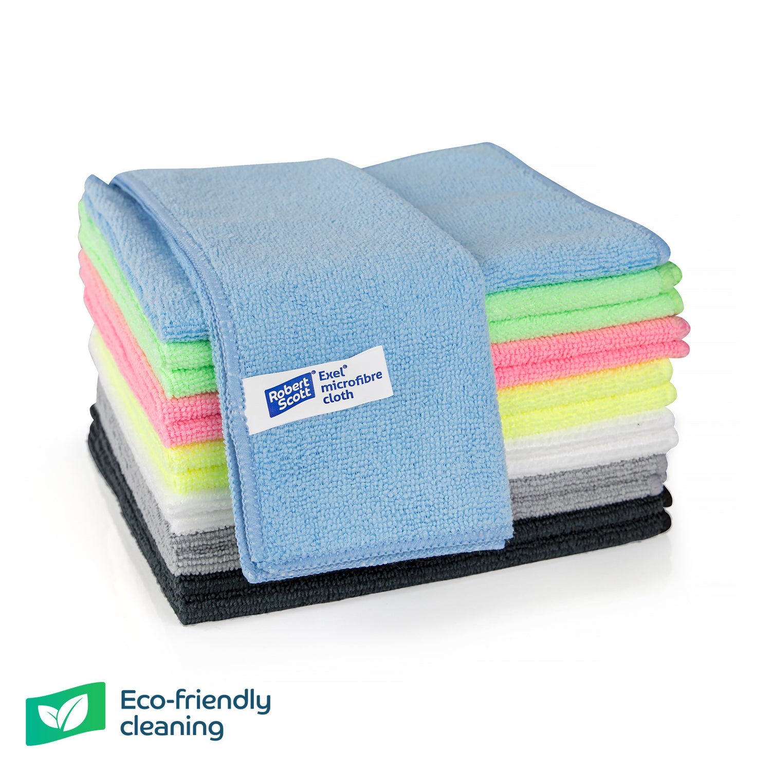 Professional Robert Scott Exel® microfibre kitchen cleaning cloths designed for commercial and catering use. Highly absorbent, reusable and machine washable, these 40 x 40cm cloths effectively remove grease, dirt and bacteria from worktops, stainless steel and food preparation surfaces. Available in colour-coded options for hygiene control. Pack of 10.
