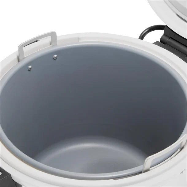 With a massive 21-litre capacity, it can hold up to 80 cups of cooked rice, making it an ideal partner for high-volume food service. Built with a premium non-stick inner pot, it's easy to clean and maintain. The simple one-button operation ensures effortless use even during busy service hours.