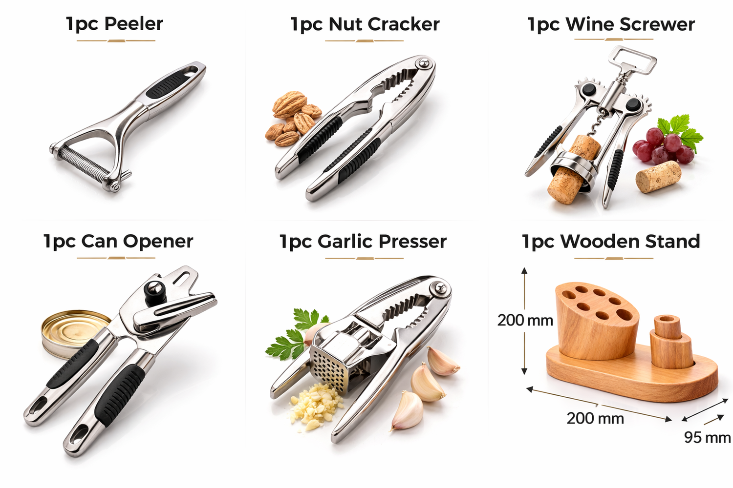 6 Pieces Kitchen Gadget Set with Wooden Stand: