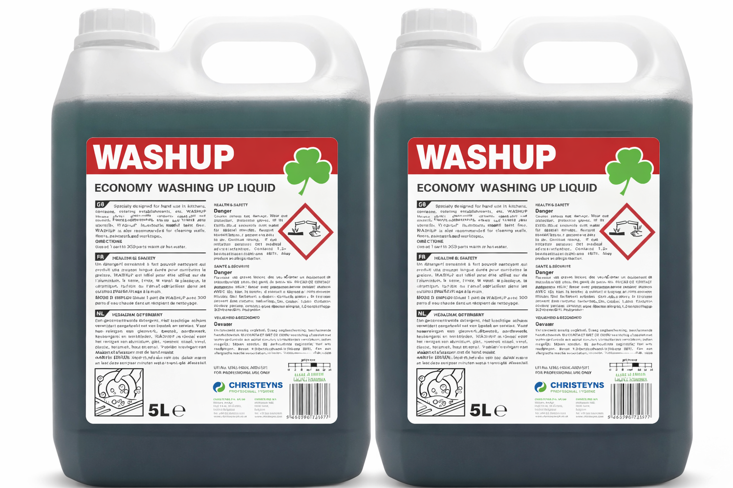 Christeyns Washup 10% Washing Up Liquid is a professional, concentrated detergent designed for commercial kitchens and catering environments. Its effective grease-cutting formula quickly removes food residue from crockery, glassware, cutlery and cookware, leaving items clean and streak-free. Ideal for restaurants, cafés, schools and hospitality businesses, this cost-effective washing up liquid delivers reliable performance for everyday professional use.